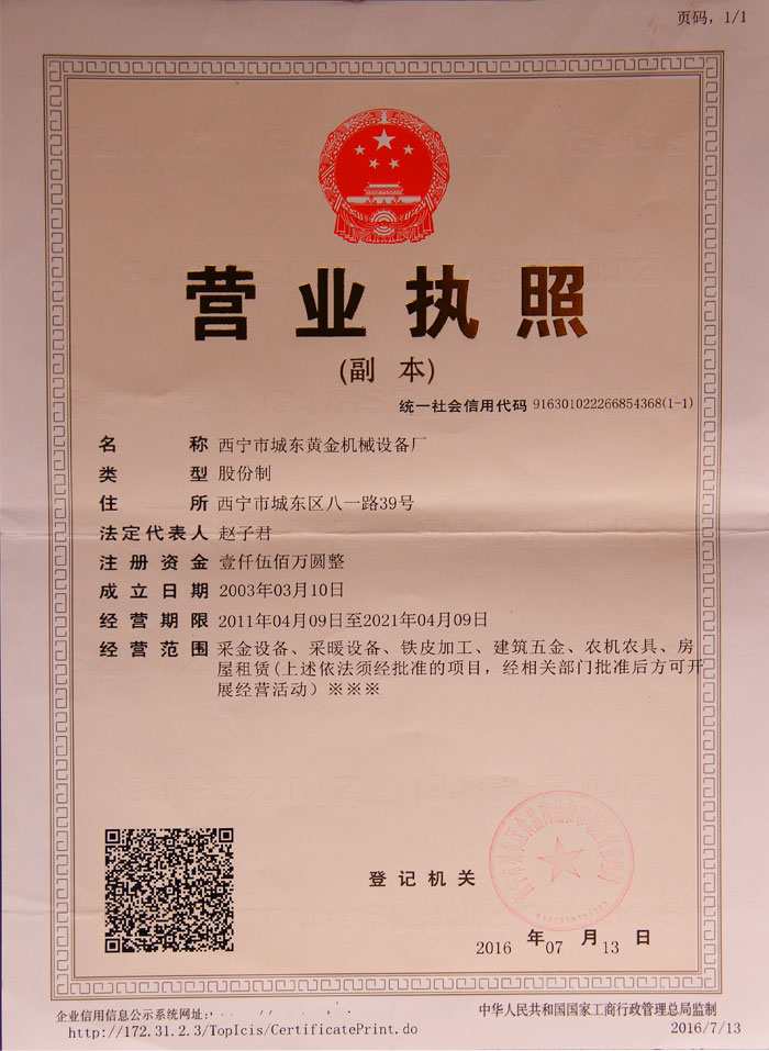 青海西寧黃金機械設備有限公司成立于1996年,原址為青海省西寧市城東區湟中路 72號(黃金賓館旁) ,現搬遷至青海省海東市平安區河湟新區高鐵南路102號,是青海一家生產采金機械設備為主的企業。是集采礦、采金設備制造、烤箱、鐵床加工、大中型機械設備生產以及對外承接各種五金深加工的中等規(guī)模企業...